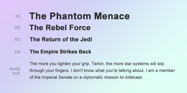 Size is also a tool for demonstrating hierarchy on a web page by creating contrast between text elements. For example, subheadings are usually shown to be larger than the paragraphs they summarize or introduce (see the image below).