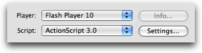 Double-check that Script is set to Actionscript 3.0. The Player setting is dependent on the SWF version you specified in the 'Slideshow Type - Pro or Basic' pod in the Global Configuration and Playback Settings section of the main wizard when creating the slideshow. If you chose the Basic SWF, you can use the Flash Player 9 or higher. If you chose the Professional SWF, you must use the Flash Player 10 or higher. Failing to use the proper player version will result in your Flash project "breaking" when run.