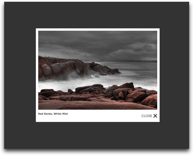 In our example, we have a small slideshow in the example page (it is only 300 x 200 px).    When completed, clicking on an image in the slideshow will result in a popup like this: