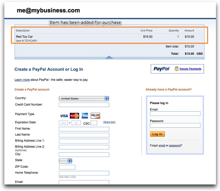 • A standard PayPal purchase button form is inserted in the HTML page then wrapped in HTML code to hide it, making it invisible to the user.