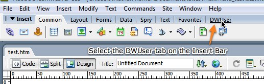 First, selec the DWUser tab on the Insert Bar: