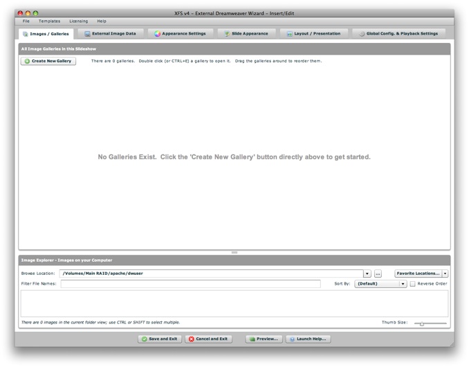 This is where you will actually create the slideshow. When you are finished making edits in the external wizard, click the Save and Exit button: