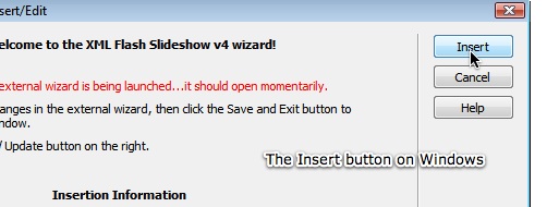Finally, click the 'XML Flash Slideshow v4 - Insert Slideshow' button: