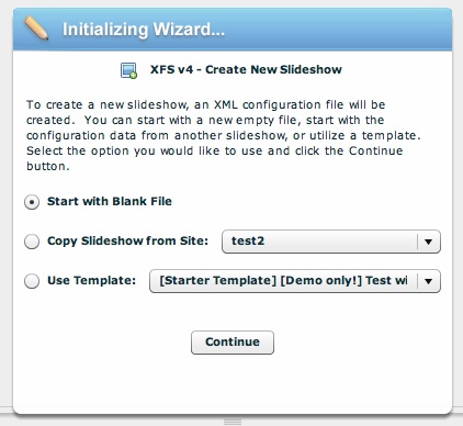 If you are running the Insert Wizard (as opposed to the Edit Wizard), you will need to create a new slideshow configuration file for the slideshow. The dialog below allows you to do so: