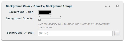 | Background Color | The color of the background behind the slideshow. Only applicable if Background Opacity is greater than 0. |