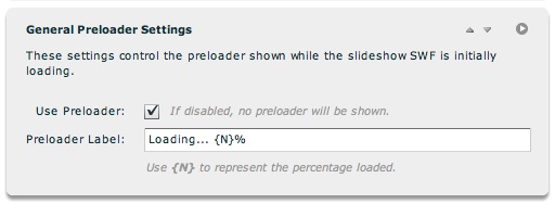 The settings in this pod control the preloader which is displayed while the slideshow SWF is initially loading.