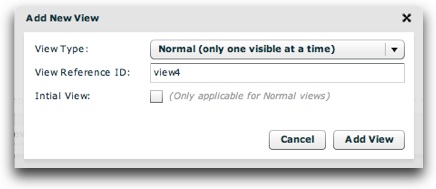 You'll enter the view type (Normal, Overlay, or Underlay), reference ID, and -- if the view type is Normal -- whether the view is initially displayed. Then, click the Add View button to add the view.