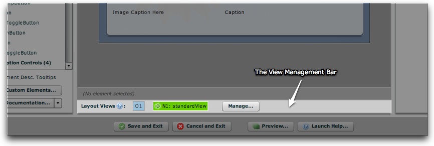 Within the Layout / Presentation section is the View Management Bar, located just below the Design Area: