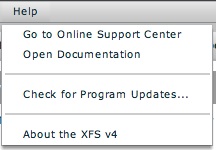 - Go to Online Support Center - Opens a browser window and directs you to the XFS v4 Support Center.