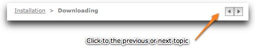 At the top of the page, above the main page title, there are the page breadcrumbs and the navigation arrows.  The breadcrumbs offer easy links to the parent topics of the current topic.  The navigation arrows allow you to to navigate to the previous or next topic: